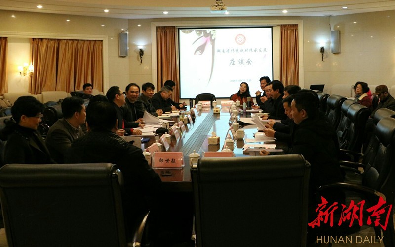 华声在线3月8日讯(新湖南客户端·华声在线记者 龙文泱 摄影 胡邦建)今天,湖南省传统戏剧传承发展座谈会在湖南艺术职业学院召开,湖南省文化厅、市州文化主管部门代表、湖南艺术职业学院、省直各传统戏剧类项目保护单位主要负责人及传统戏剧领域非遗专家代表共聚一堂,为我省传统戏剧的传承发展出谋划策。