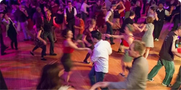 最具有代表性是Lindyhop, 一种双人的社交舞;随着"Big band Era"到来,各大舞会上现场的摇摆乐队和摇摆舞者开始在无数个夜晚狂欢。
