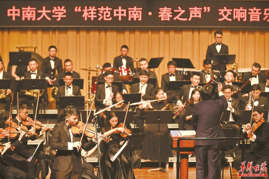 4月24日,“样范中南·春之声”交响音乐会在长沙音乐厅上演。该音乐会由国家大学生文化素质教育基地(中南大学)主办、中南大学学生艺术团承办。近年来,该校通过实施“文化中南”孕育工程,每年引入20余场高雅艺术进校园活动。交响乐已经成为中南大学乃至湖湘大学生的一张艺术名片,构筑了学生践行素质教育、传播素质教育的多彩舞台。