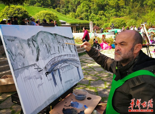 “我画这座桥,有两层含义:一是景区联通两岸的桥,可以让两岸的人自由往来;二是连接中国和意大利的‘桥’,马可·波罗让意大利知道中国,‘桥’可以让两国人民紧密联系,加深友谊和心灵沟通。”得罗·卡波格罗索这样解释他绘画的原因。“通过这次采风,我特别希望能多来这神奇美丽的地方绘画。”