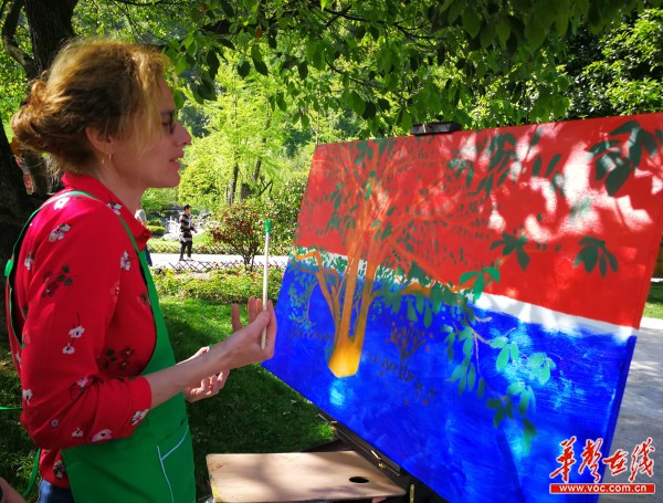 女画家朱莉·波利多罗出生于罗马,获得过联合国教科文组织的奖学金,曾在东京、香港、巴黎、米兰等地举办个展。她绘画的照片被新华社传播后,网友点赞她为“骨灰级女神”,认为她对于色彩的理解别具一格。她说自己特别喜欢中国的文化和艺术,非常喜欢研究中国文化艺术的“空”与“满”在绘画中的运用,追求中国画中“空”的意境、“留白”在绘画中的运用。谈到这次来张家界采风给她的感受,她说,对于她是一次很大的荣幸和享受,她非常肯定会再来中国和张家界,也期待有机会结识更多的中国艺术家朋友,与他们交流。