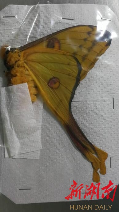 该品种为马达加斯加所特有,是世界上身长最长的蛾类之一,这也是湖南口岸首次截获彗星飞蛾标本。