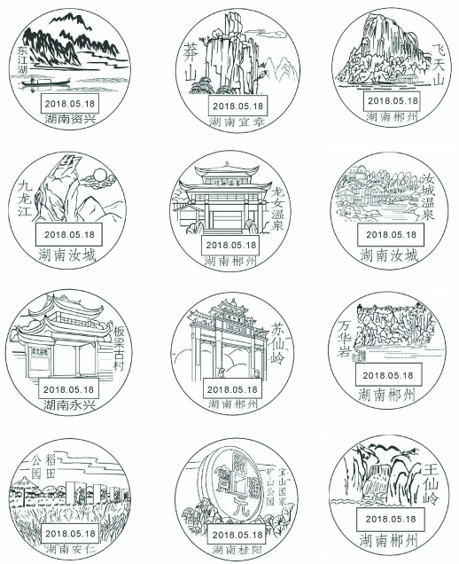 华声在线5月14日讯(湖南日报·华声在线记者 李秉钧 通讯员 王跃华)今天,资兴矿工李翔设计郴州首套风景邮戳亮相。该套邮戳让郴州境内12个AAAA级以上景区的独特风光,在方寸之间得以完美呈现。据悉,该套邮戳将在5月18日举行的第六届中国(湖南)国际矿物宝石博览会开幕式上启用,届时,“郴州风光”将伴随着信件向全世界展示。