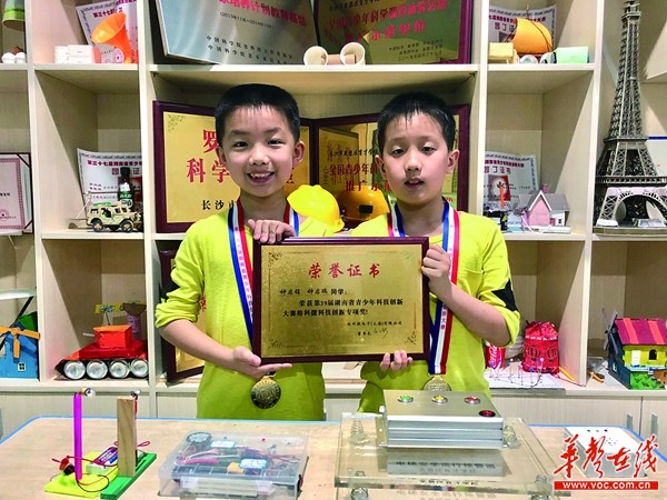 哥哥钟启睿(左)弟弟钟启铭,获得第39届湖南省青少年创新大赛金奖和格科微科技创新专项大奖。记者 刘镇东 摄