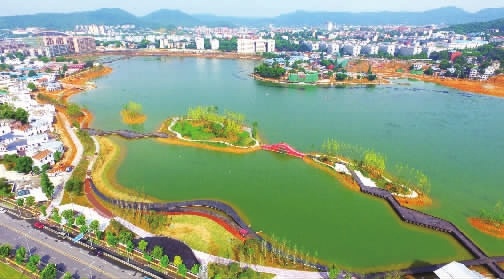 6月24日,蓝天白云下的长沙后湖碧水清澈如镜。该湖曾因周边废水排放,变成了一个黑臭水体,于去年10月启动水环境综合整治。目前,继主体工程完工后,蓄水工作也于近日全部完成,正在进行景观绿化和水草投放等扫尾施工,预计下月可全部竣工。记者 田超 通讯员 王泽东 摄