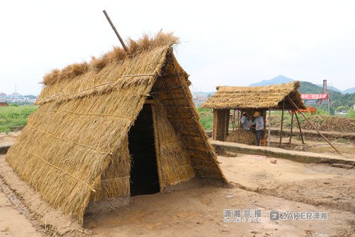 近日,在考古现场,湖南省文物考古研究所编辑出版与公众考古中心主任张兴国带领一群工人,利用稻草、泥土、竹子、松木等天然素材,复原商代 " 石门人 " 居住的房屋和烧制陶器所用的陶窑。在克服重重困难之后," 石门人 " 居住的其中一类房半地穴式房屋 " 被基本复原了出来。
