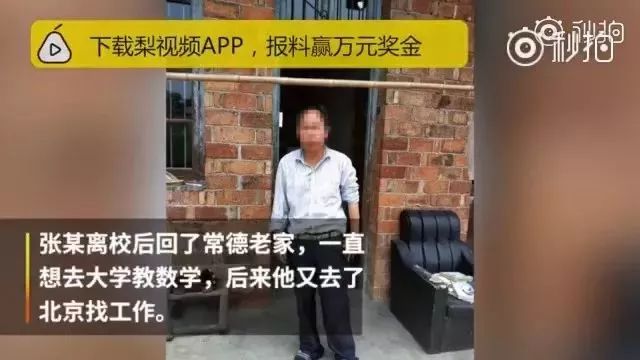 1992年,常德张某考上北京大学研究生并继续读博。他在读博的最后一学期称自己患病,从北大肄业。之后短暂工作了一段时间。2001年回到老家常德后一直待业到现在。