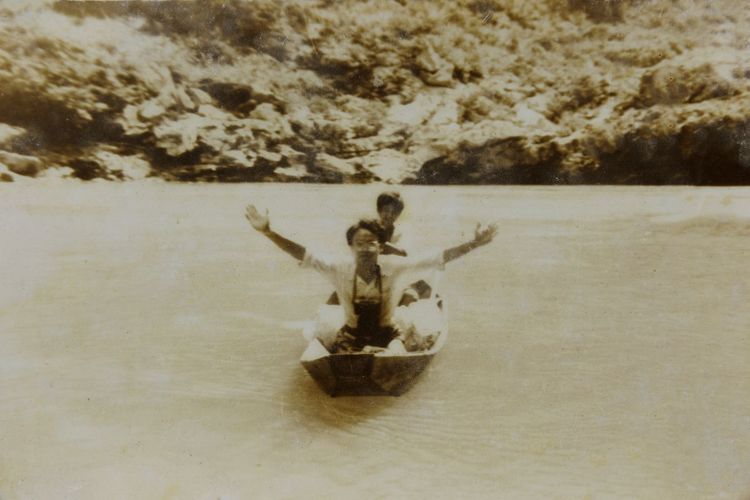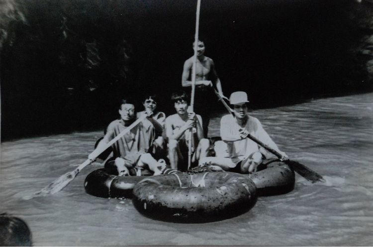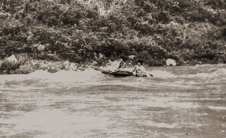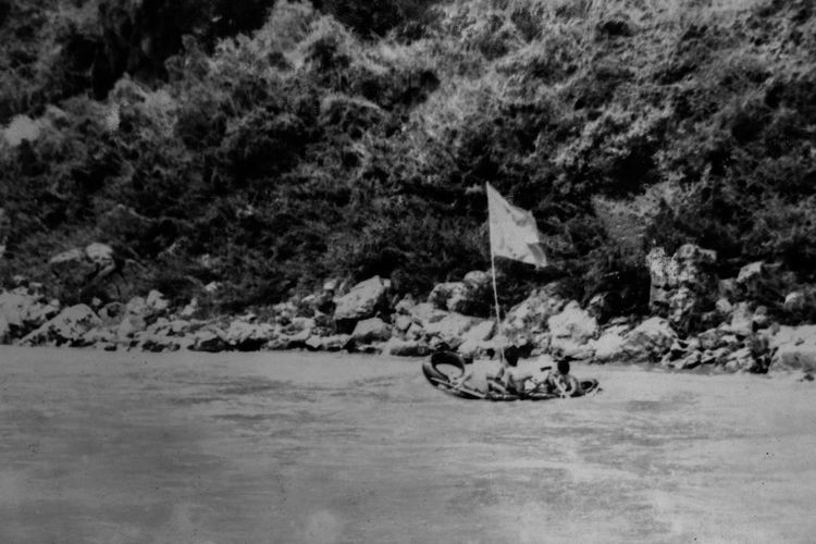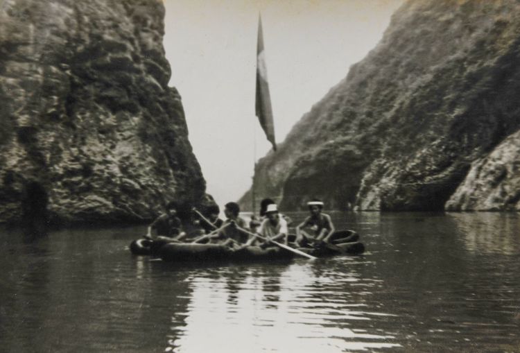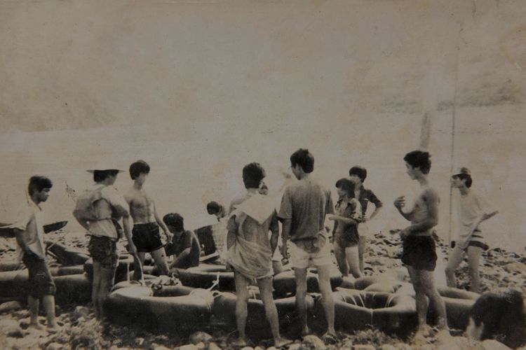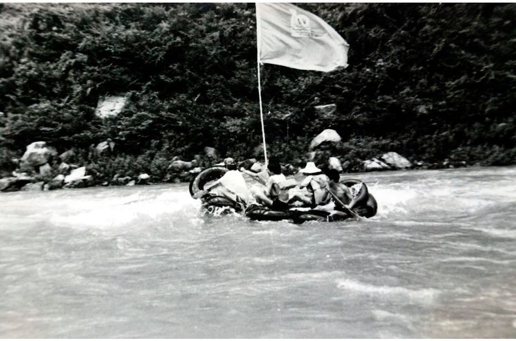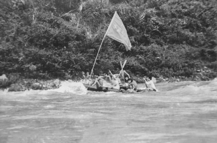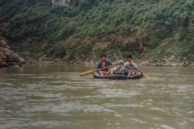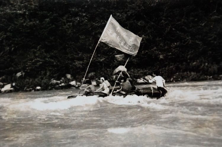 先锋号:秦自华(左),阙文(右),水性最好的两名漂流队员,号称先锋“敢死队”。 任务是跟在导航船的后面,按照导航船指挥的航线,先漂开路。在温塘门坎岩翻船时,得以逃脱的关键是他们水性好。