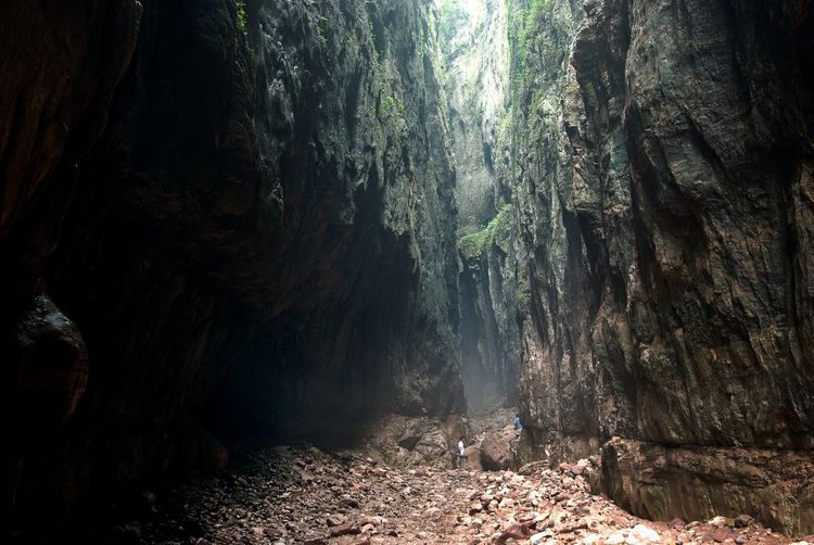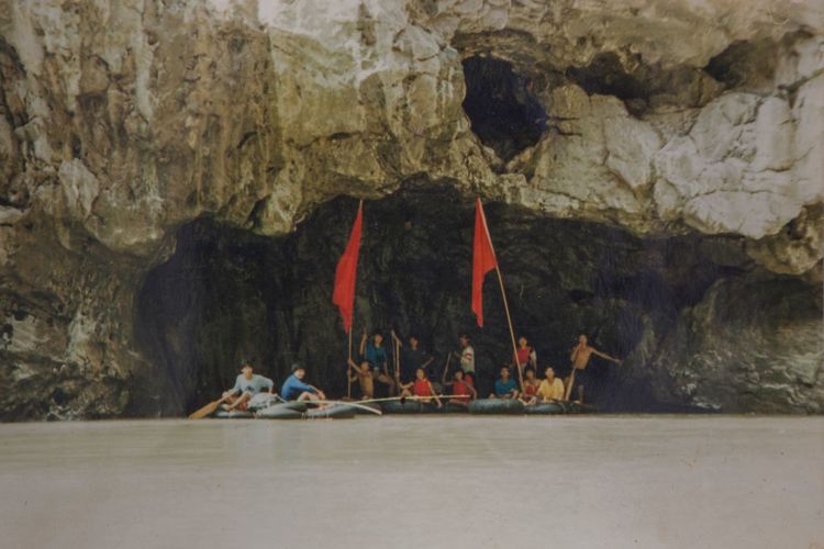 茅岩河边金碧辉煌的溶洞前的第一次修整,队员称其为铜壁洞