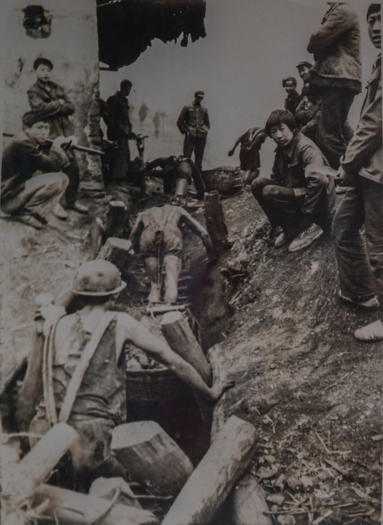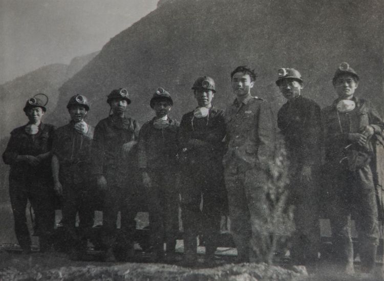 那个时期在道湾煤矿采风的覃文乐与矿工合影