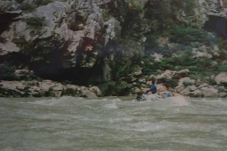首漂后31年总结首漂成功经验,确保安全的最主要因素是用轮胎自制的漂流艇,因为轮胎和梯子扎成的漂流艇,中间是空隙,在急滩大浪中,浪尖可以从漂流艇空隙中冒出,艇一直可以保持平衡,不会被掀翻。如果是底部封闭的漂流艇,浪尖直顶封闭漂流艇底部某一部位,艇不平衡,遇大浪艇必被掀翻,让人掉入河中,发生安全事故。现在回味“吉人自有天象,成功有其选择方式的必然”。如果当时借到了底部封闭的漂流艇,在大浪中艇被掀翻肯定是必然,庆幸当时的选择。