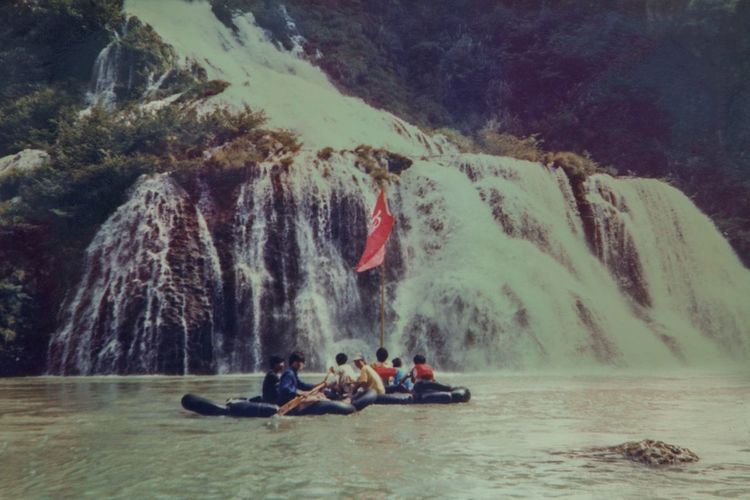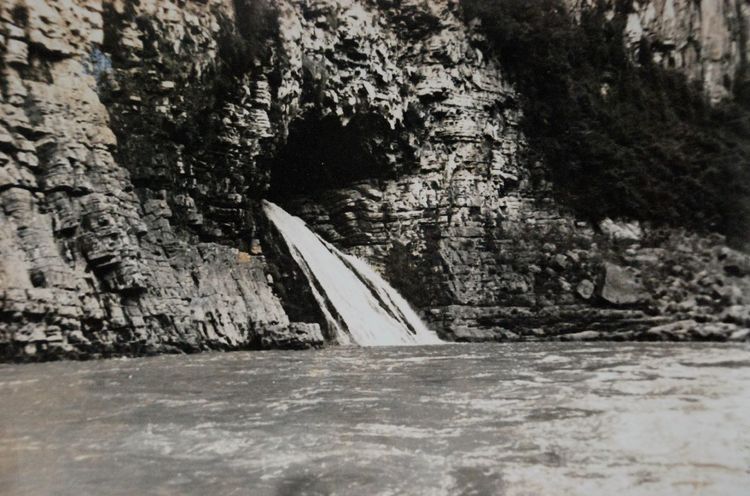 如此美景,大家久久不愿离去。为了留下珍贵的记忆,覃文乐让三艘漂流艇向下划去,连续拍了几张漂流艇接近水洞子瀑布的照片后,才依依不舍的和明子一道去追赶漂流艇。