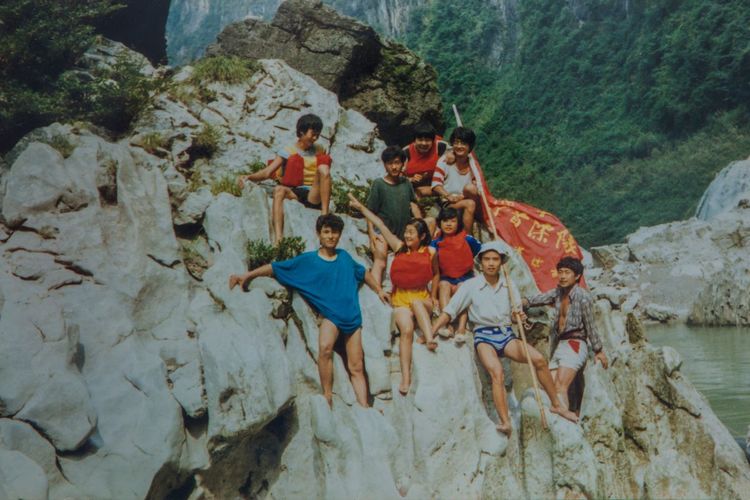 合影吧!大家集聚在大石头上扛着我们的漂流队旗,和水洞子一道走进了漂流队员每个人的史册。