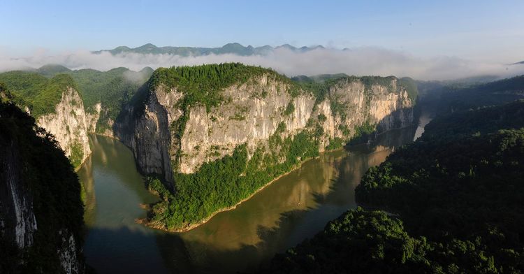 茅岩河的源头在桑植五道水,五股涓涓细流顺势而下,纳千股溪流之水而成河。茅岩河之水一路经平地,绕山川,淌山谷,顺势而过,显现了水的柔弱。遇到绕不开的峻岭,任它再坚硬,水割成峡,水滴石穿,水到渠成,让山为它让路,让山向它低头。这就是水的强悍,水的力量,水的势不可挡。茅岩河一路有寂静,有咆哮,不管有什么山川隔挡,直奔向东,汇入洞庭,奔入长江。