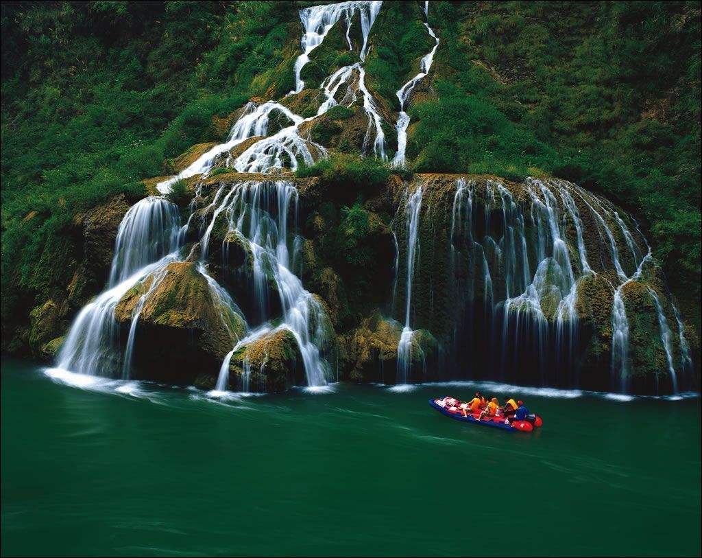 醉了!一切都醉了!队员们欢呼着,拼命划着桨,钻进这珍珠般的水帘,去沐浴自然,去亲吻秀发的芳香。