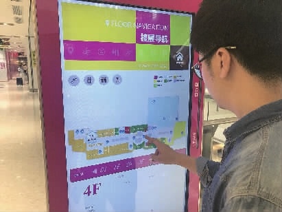 6月1日,一位顾客正在商场使用楼面导航设备。 记者 朱蓉 摄