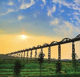 春华渡槽,带着岁月的痕迹,载着历史的沧桑,夕阳西下,依旧气势磅礴。 章帝 摄