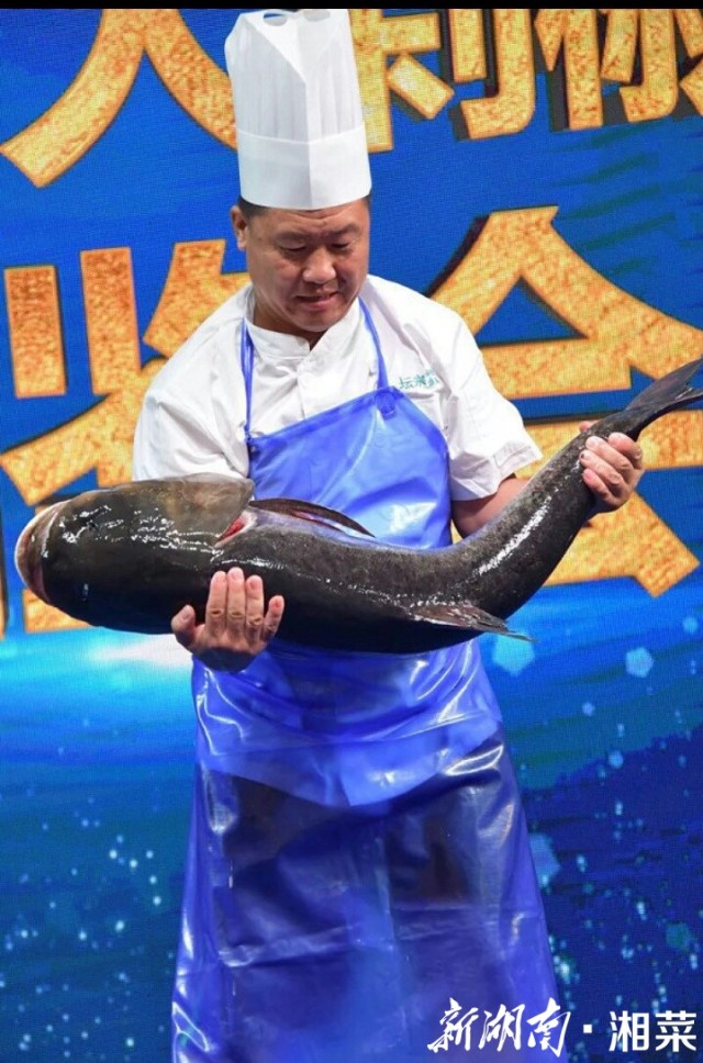 坛宗剁椒鱼头最大的特点就是一个字—“大”。本届品鉴会更是选用了42斤的大雄鱼来做剁椒鱼头。周大师介绍,大雄鱼不喂饲料,只吃浮游生物长大,而且生长在两万亩以上的水域之中,要长到42斤,需要15年以上的时间,近乎野生,所以力气很大,做成剁椒鱼头也格外味美。