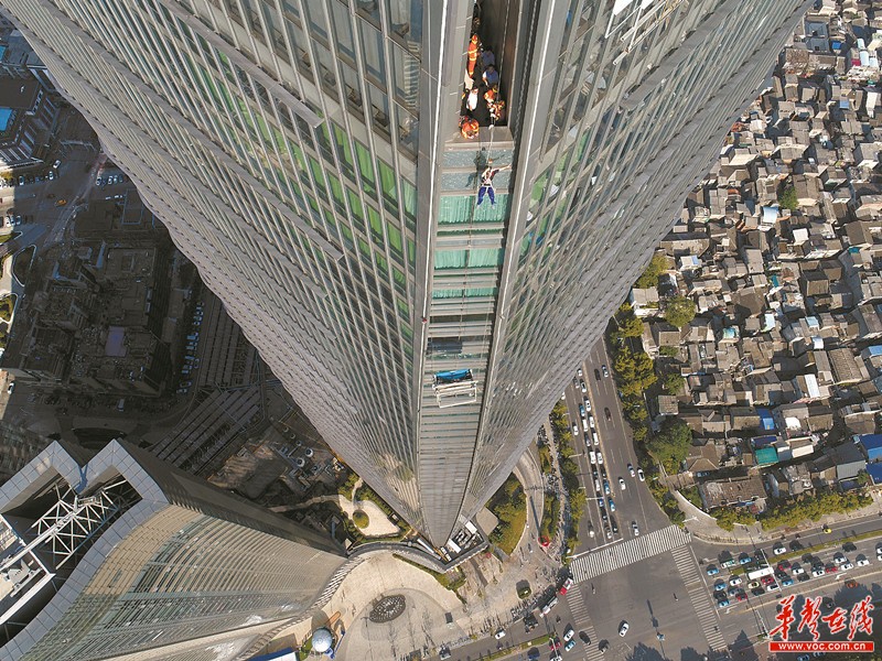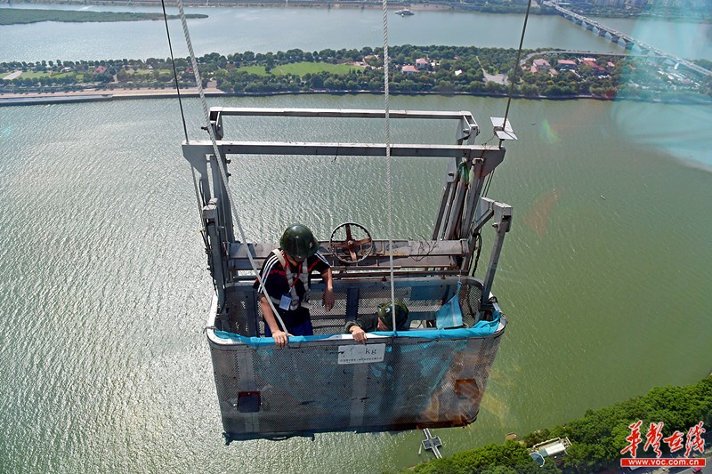 8月21日13时40分,因维修吊篮钢丝脱轨,2名在长沙市天心区华远·华中心君悦酒店清洗玻璃幕墙的工人,被困在该酒店57楼外的高空中。长沙市公安消防支队指挥中心接警后,派出15名消防官兵前往救援。因现场情况较为复杂,施救难度较大。在与技术人员充分沟通后,救援人员利用吊篮支点的备用救援钩,在顶楼设置安全绳进行上拉救援。经过3个小时的努力,2名工人被成功救出。
