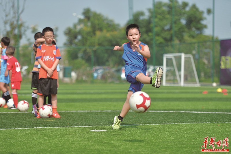 8月20日,小学生在参加足球夏令营活动。当天,2018年湖南省青少年“体育·新时代”爱动巅峰足球夏令营在长沙开营,20余名学生免费参加为期10天的足球培训,快乐度暑假。 傅聪 张洋银 摄影报道
