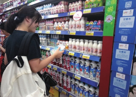 消费者在金星路一超市内选购乳酸菌饮品。 记者 黄亚苹 摄