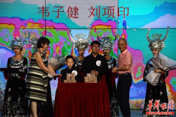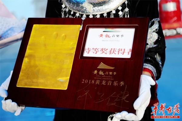华声在线8月10日讯 今天上午,中央音乐学院青年钢琴手韦子健、山东潍坊7岁琴童刘项印分别获得2018黄龙音乐季钢琴大赛专业组和业余组特等奖。黄龙音乐季创始人、组委会秘书长叶文智,肖邦国际钢琴大赛评委会主任、黄龙音乐季钢琴艺术周评委会名誉主任波波娃分别为两名选手颁发50万和30万艺术发展资助金。韦子建、刘项印两位大奖获得者与全体评委还在黄龙音乐季留下了自己的手印,他们的手印将被做成手模,展示在张家界黄龙洞哈利路亚音乐厅。