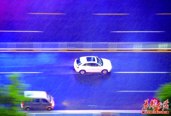 7月31日,长沙市开福区芙蓉中路,车辆在大雨中行驶。当天傍晚,长沙城区突降大雨,给连续高温的星城“冲了个凉”。 三湘都市报·华声在线记者 唐俊 摄
