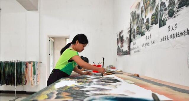 去年7月份,听说村里的农民画室正在招生,“从小就对画画感兴趣”的詹秋明赶紧报名学习。