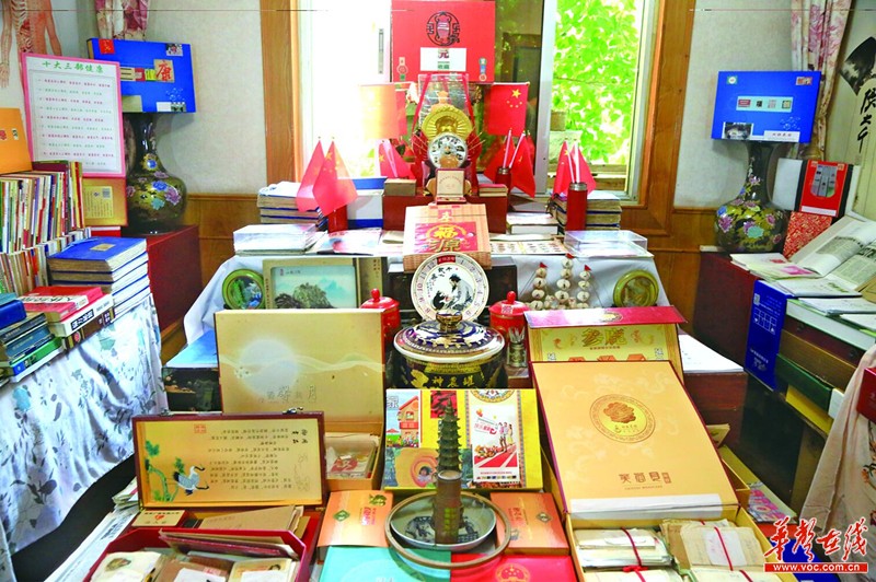汤文祥家保存收藏的资料。记者 张洋银 摄