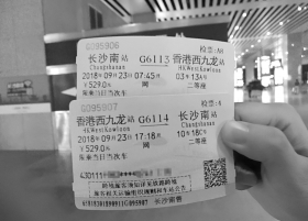 早上8点,记者登录12306官网,在目的地输入“香港西九龙”,票务信息立马显示出来,分别为长沙南始发至香港西九龙的G6113、北京西始发至香港西九龙的G79、上海虹桥始发至香港西九龙的G99。不过,由于广深港高铁香港段正式运营期间恰逢中秋小长假,以及紧接着的国庆长假,长沙至香港的余票已不多。记者查询发现,直至10月7日,长沙至香港西九龙的G79次、G99次列车票几乎售罄,G6113列车尚有较多余票。想趁着假期去香港旅游的小伙伴,要抓紧时间购票啦。长沙火车南站相关负责人介绍,9月23日至10月8日,从长沙南始发的G6113次列车共计网络售票2059张车票,其中到达西九龙站的共1200张。