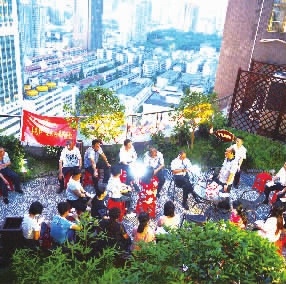 ▲雨花区家园社区组织党员重温入党誓词。