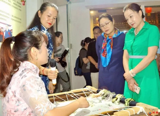启动仪式后,考察团一行参观了长沙雨花非遗馆,看到湖南省巾帼巧手创业就业孵化基地展示的一系列手工艺品,大家连连称赞。其间,共青团中央《青听》栏目10万+主播@晓波更是爽快地下单购买了一件编制工艺的项链,她笑称,“实际行动是最好的点赞。”随后,考察团一行还与手工艺人进行了座谈采访及交流。