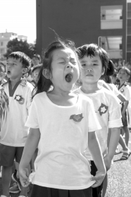 9月3日,长沙中小学开学第一天,岳麓区第二小学和湖南师大附中星沙实验学校的一年级新生不约而同地打起了哈欠。组图/记者谢长贵辜鹏博