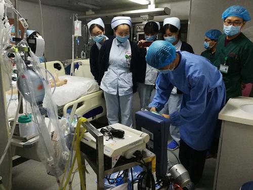 湘雅三医院急危重症科主任杨明施和副主任刘作良立即组织科里人员进行讨论,考虑到病情进展较快,情况危急,存在ECMO(体外膜肺氧合)治疗的适应症,紧急决定先派ICU及急救中心ECMO团队赶往怀化进行手术。10月27日凌晨2点25分,ECMO团队到达怀化市第一人民医院,在一个小时后成功为患者安装好ECMO人工心肺仪,手术进展顺利。