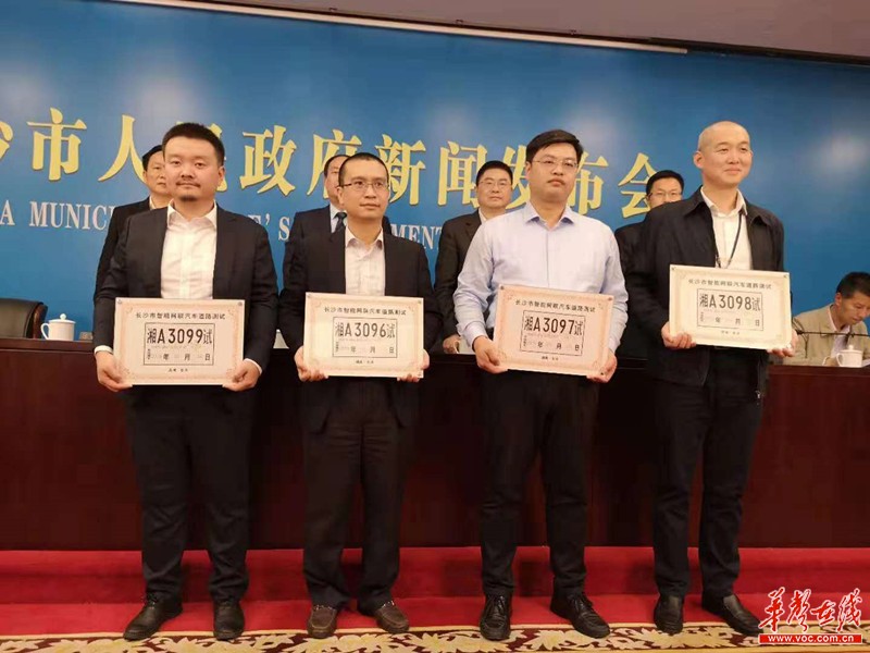10月26日,长沙市政府给四个单位发放首批智能网联汽车开放道路测试号牌