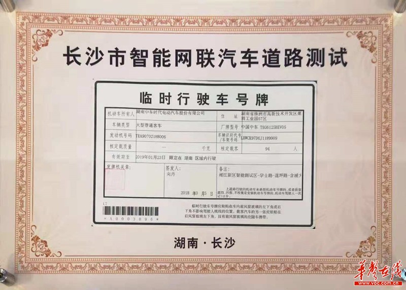 10月26日,长沙市政府发放了长沙首批覆盖4个汽车种类的智能网联汽车开放道路测试牌,并公布了长沙首期开放道路测试路段。