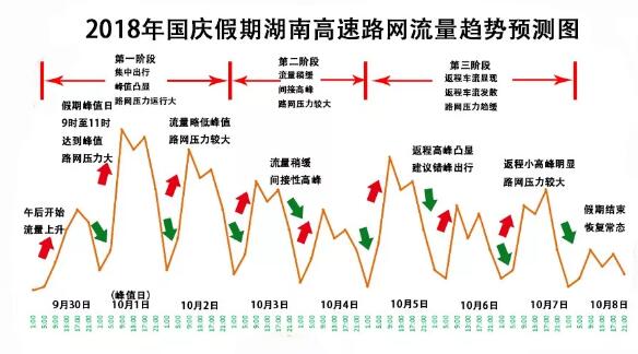 10 月 4 日,国庆假期进入后半程,根据节前发布的国庆假期全省高速公路路网运行态势研判,自驾外出的市民们要考虑返程了。10 月 5 日,提前返程和错峰返程车流出现,短途出游车流叠加返程车流迎来一波小高峰。高峰时间体现在 9 时至 11 时,14 时至 16 时之间。对长假后期路网的通行压力有较大的缓解作用。