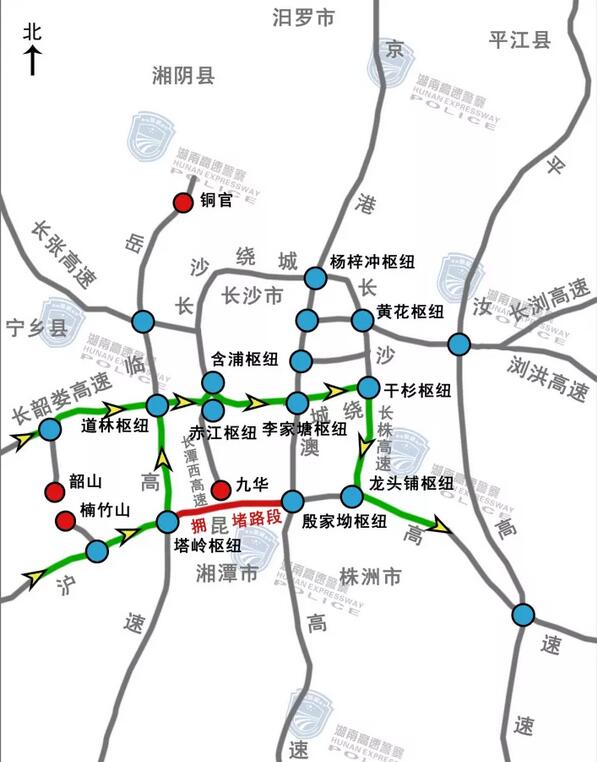 关注湖南高速警察微信、微博,查阅高德、百度地图获取及时路况信息,实时调整应对。