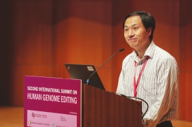 11月28日,香港,贺建奎在第二届国际人类基因组编辑峰会上演讲。