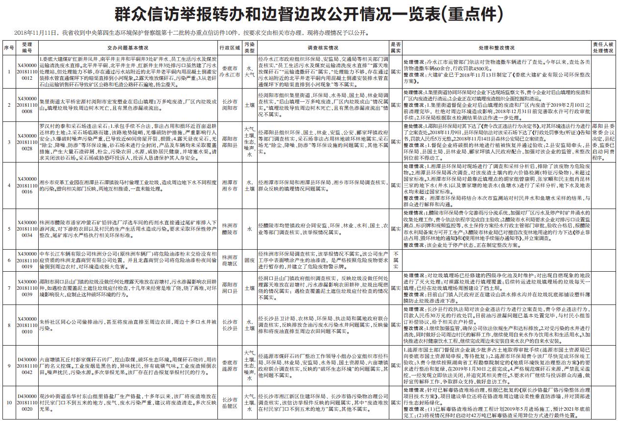 2018年11月11日,我省收到中央第四生态环境保护督察组第十二批转办重点信访件10件,按要求交由相关市办理,现将办理情况予以公开。【查看大图】
