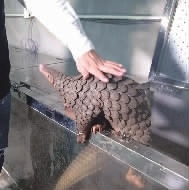 ▲森林公安缴获的活体穿山甲,健康状况良好。记者 李成辉 摄