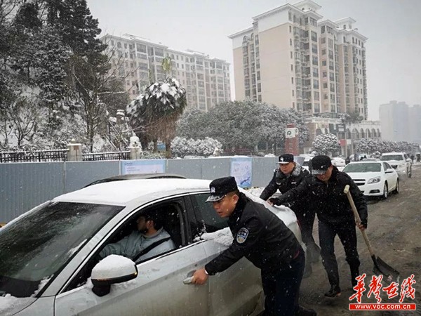 长沙市公安局启动联动机制,统一调度市局机关及其他警种警力支援路面交警,在重要时段、重点路段路口协助路面执勤交警疏导交通,维护道路秩序,并及时为困难群众、车辆提供服务帮助。