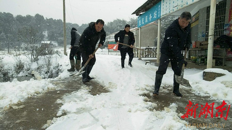 大雪初歇,该镇机关干部和村(社区)干部、党员组长主动担当,不畏严寒,利用铁锹、锄头等除雪工具,按照属地管理原则开展扫雪,对上下坡、桥梁等路段设立警示牌,对积雪较厚的主干道调用铲车除雪,确保了群众出行安全。