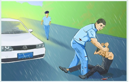 获悉警情后,潘德志率民警前往现场处置。处置过程中,该男子为阻止民警靠近,拿刀抵住自己的咽喉,以持刀自杀相要挟。在确认该男子的身份后,潘德志身着便装只身上前与他对话。并将其哥哥等人找到现场劝说,均无效果。为稳定他的情绪,潘德志一边继续给他做工作,一边给其递烟送水分散注意力。围观人群越来越多,必须尽快制服男子解除险情。局长邓勇决定,自己着便装亲自上前劝说,分散嫌疑人注意力。市公安局特警支队民警彭波伺机接近夺刀。此时,男子坐在一辆汽车的引擎盖上,彭波瞅准机会,迅速靠前,准备夺刀,但嫌疑人因引擎盖有水身体向下滑落,意外地躲过了彭波的攻击。潘德志见状飞速扑过去,抱住嫌疑人。紧随其后的民警控制住男子拿刀的左手,不料男子右手接过刀,一刀从潘德志后腰刺入。随后,又在潘德志腿部连刺四刀。潘德志忍住疼痛夺刀,又被刺穿左手中指。潘德志始终不松手,在其他民警的配合下,终将男子制服。身中5刀的潘德志,经半年的治疗,才基本痊愈。医生说,腰部那刀差半公分,便刺穿胸膜、肺部了。