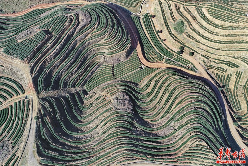 12月18日,航拍桃江县武潭镇茶园,呈现出的曲线美轮美奂,犹如迷宫。去年11月,该县引进华莱茶旅文化园项目,投资1亿元建设茶叶文化旅游基地,带动周边茶产业、乡村旅游等融合发展。目前,该项目基本建成。