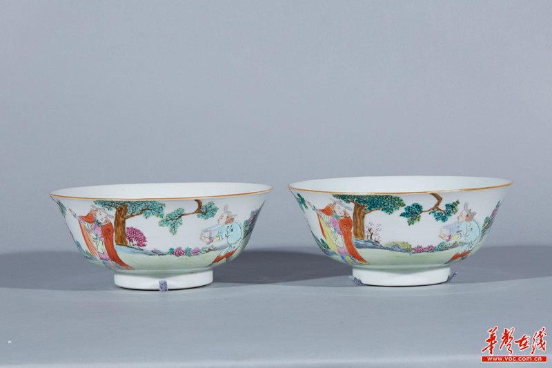 乾隆 粉彩觐宝图碗一对 高8CM 口径19CM *2