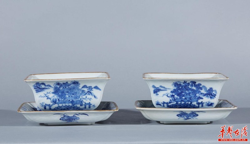 乾隆时期的青花碗盘并不少见,但方形碗盘非常少,且成套系的方形碗盘更少。