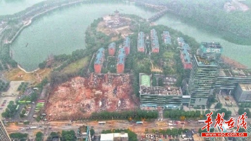 1月15日,长沙市车站北路333号,与风景秀丽的湖南烈士公园民俗文化村仅一墙之隔,机器轰鸣,人影忙碌,几辆大型拆除设备正在对几栋别墅进行拆除。
