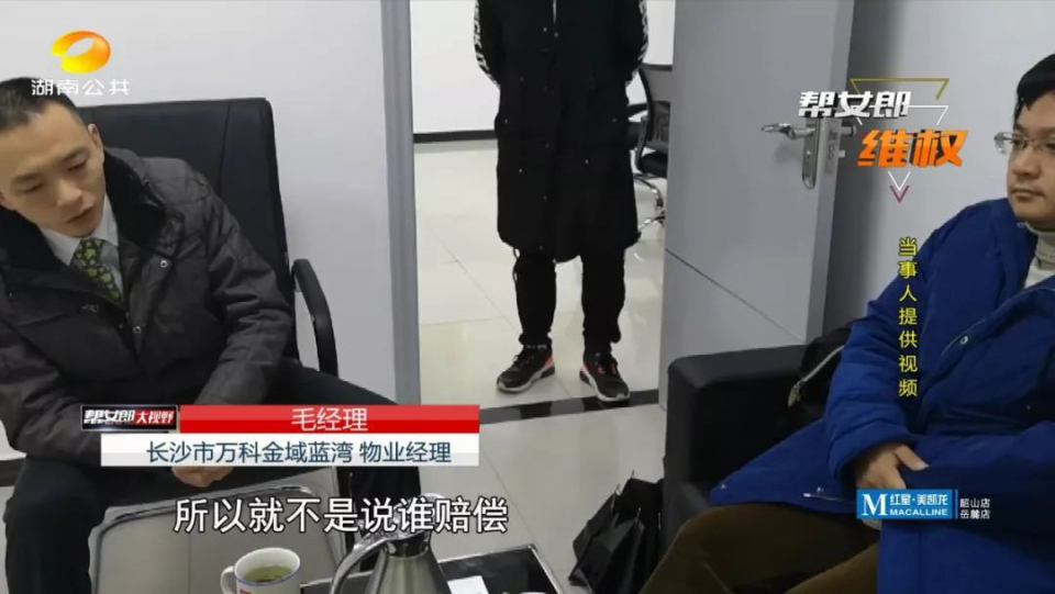 汤女士告诉帮女郎,现在万科物业以主体责任不好找为由,消极处理,没有给汤女士一个合理的解决方案。为了促成事情的解决,帮女郎陪同汤女士来到了万科金域蓝湾物业,但是没想到也是碰了一鼻子灰。