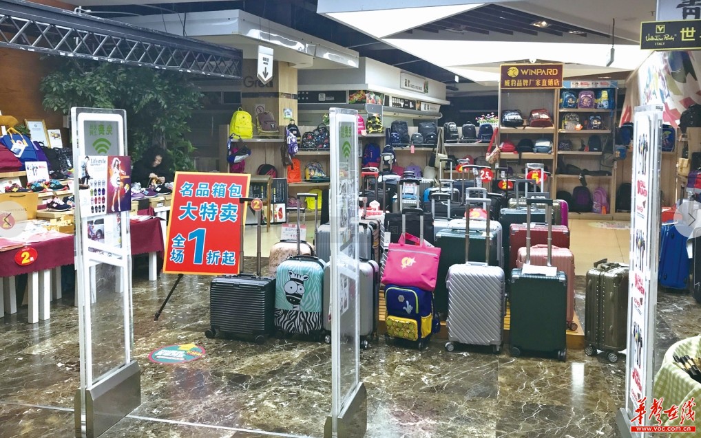 1月7日,Hishop精品超市入口已变身箱包特卖场。 三湘都市报·华声在线记者 朱蓉 摄